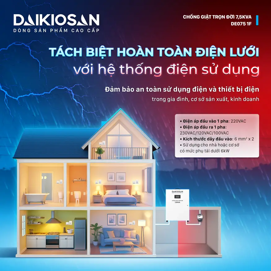 Chống giật trọn đời Daikiosan 7.5KVA DE075 1F